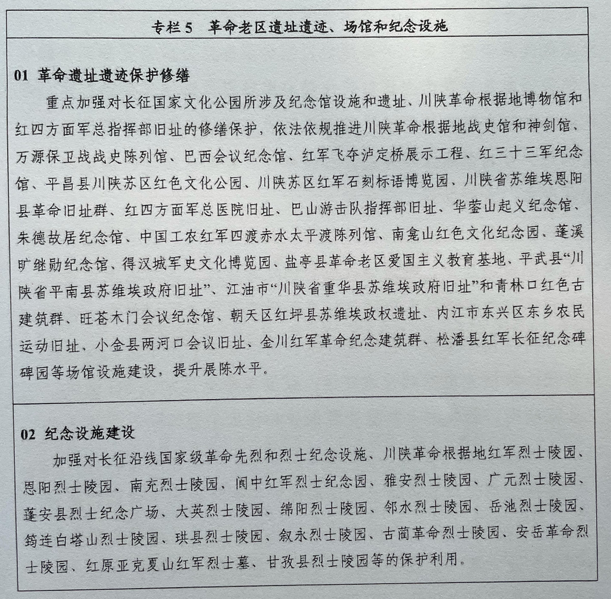 2017年,省政府办公厅印发《四川省川陕革命老区振兴发展规划实施方案》,方案包括40项主要任务,以及财税、金融等多个支持政策。