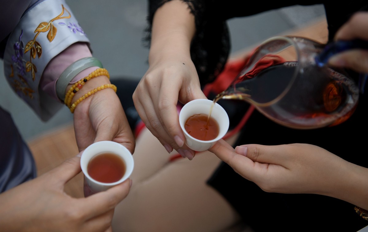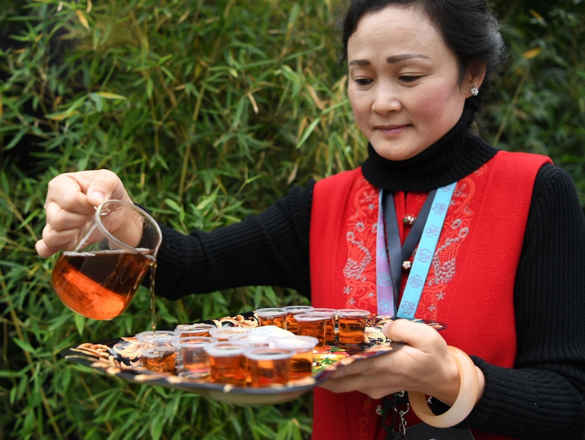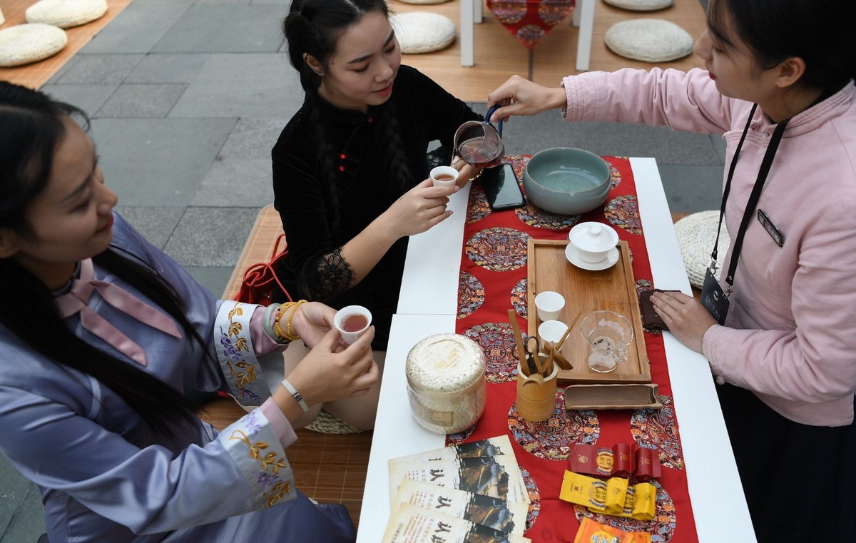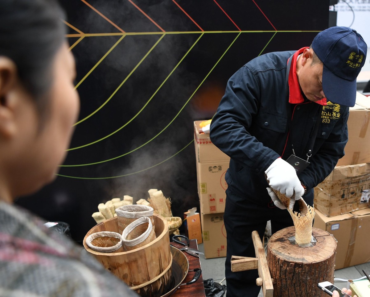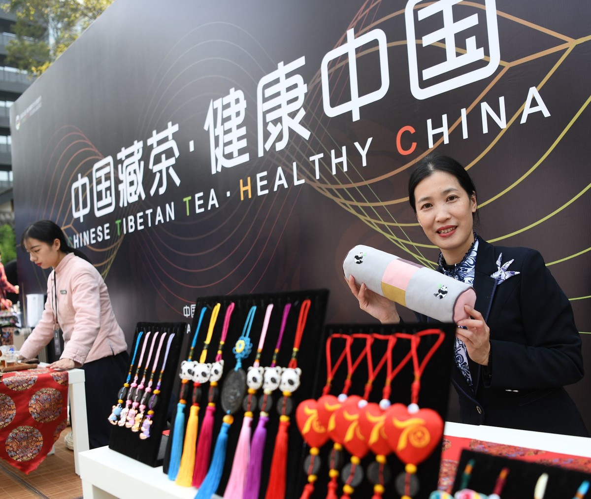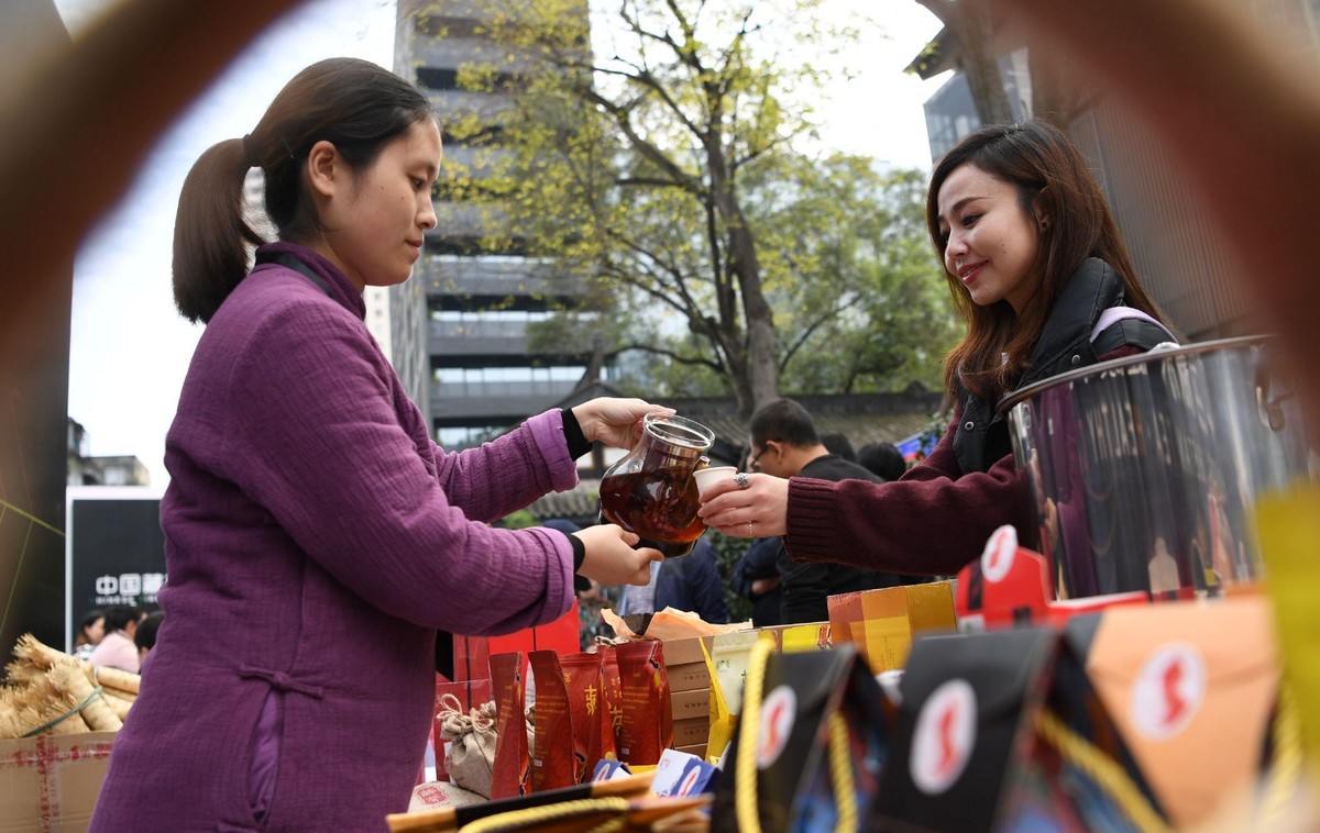 11月10日,成都市太古里“中国非遗·千秋藏茶”蓉城推介会及“健康生活·品味藏茶”万人品茶活动现场,雅安的十多家藏茶企业展点人头攒动,来自熊猫故乡的精品藏茶吸引不少成都市民和游客驻足品尝。