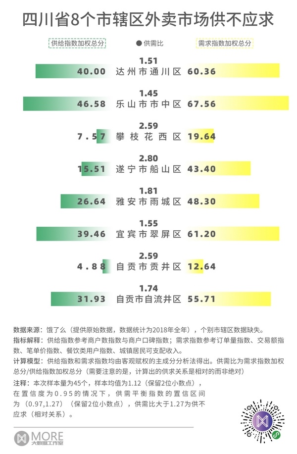 四川人的购买力和购买欲望从不止步于淘宝,本地生活服务平台也是互联网消费的重要场所。成都人依然是外卖的狂热爱好者,外卖订单量和交易额遥遥领先。但在外卖市场未来消费增长潜力上,遂宁市船山区呈现更大的可能。这里的居民需要更多外卖商户喂饱他们饥饿的胃。