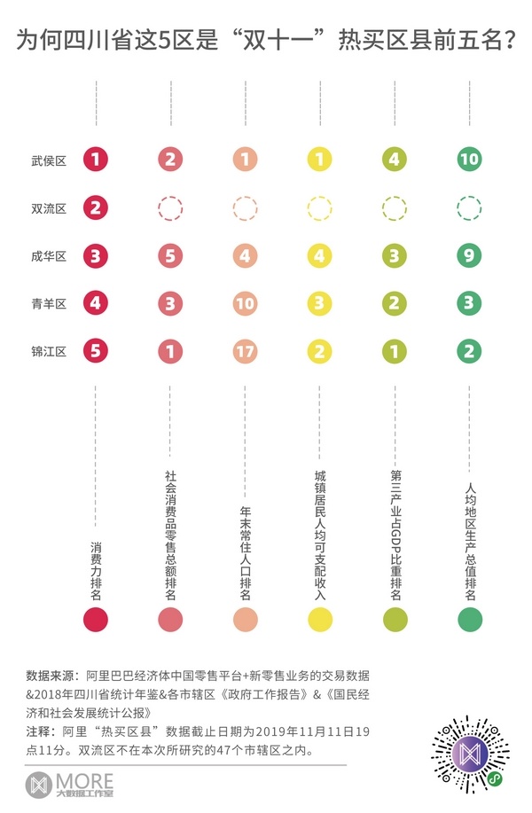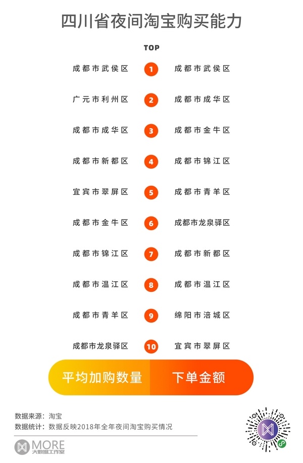 川报全媒体集群MORE大数据工作室以《四川省县域经济发展考核范围及分类表》中的47个市辖区为研究对象,立足47个市辖区的线上消费数据,关注各个区县的“剁手”群体,解读四川省数字生活新趋势。