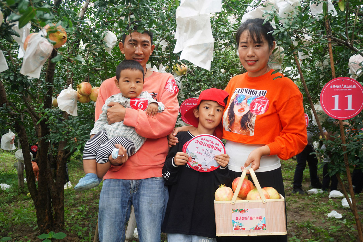 在中国传统文化当中,石榴代表着吉祥如意,寓意多子多福、红红火火。当天,“多子多福·喜上添喜”2021仁和大田石榴树认领活动在大田镇那立村火热举行,现场共38户二三孩出生的攀枝花户籍家庭参与,通过开展认领一棵石榴树、石榴亲子采摘游等系列活动为攀枝花二孩、三孩育儿大礼包“加码”。