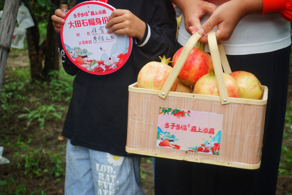 在认领期间,认领家庭除了能够拥有一棵专属石榴树,享受假日到果园休闲观光游玩和丰收采摘的乐趣,同时,大田镇将邀请认领家庭制作文字、绘画、摄影等文艺作品,参与“我在大田有棵石榴树”线上线下作品展览活动。