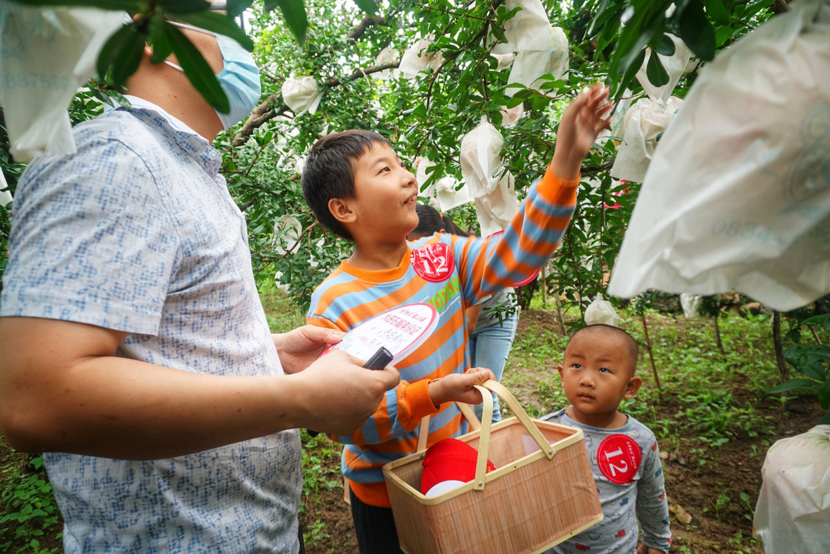 眼下,正逢石榴成熟上市的季节。在攀枝花市仁和区大田镇,随处可见果大皮薄、色泽艳丽的石榴挂满枝头。8月28日,攀枝花市民陈兴兵在大田镇片那立村世外榴园成功认领了属于自己家庭的石榴树,“我们的树叫‘多福榴树’,希望孩子以后越来越有福气。”他的言语中尽是对子女的祝福。