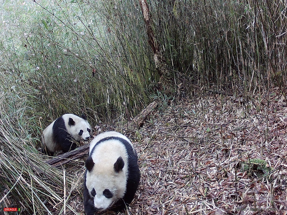 今年春季,大熊猫国家公园宝兴蜂桶寨片区(蜂桶寨保护区)与西华师范大学合作开展野生雉类红外相机监测调查,采集到不少珍贵的野生动物照片和视频,工作人员近期回收时发现了一组大熊猫同框的罕见画面。