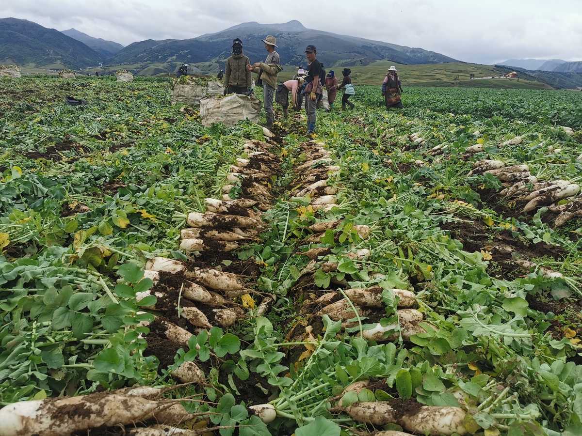 近年来,理塘县依托土地无污染、高原日照长,生长的果蔬甜度饱满、水分充足等有利条件,在濯桑现代农业园着力打造“极地果蔬”,成功种出白萝卜、小番茄、香菇、西瓜等十余种水果蔬菜。