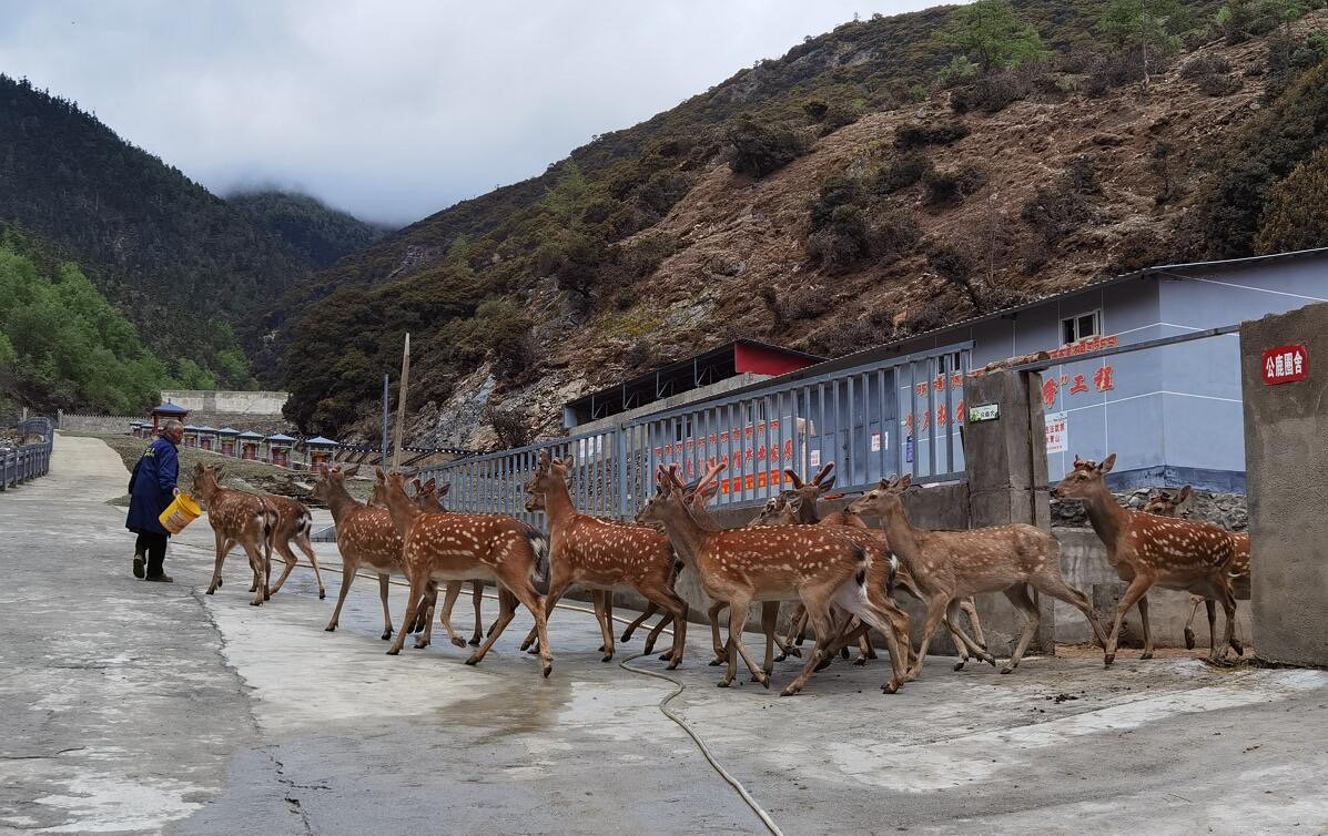 走进甘孜州稻城县赤土乡子定村,山风清冽,绿野无边。沿着一条蜿蜒的小路往山沟里走,子定村的梅花鹿便养在这郁郁葱葱的山林里。