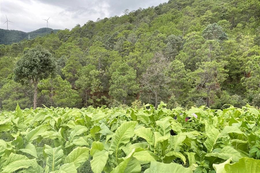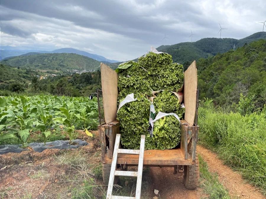 “我们现在采的是下部烟叶,等这一批全部采完回去上架烘烤,再来采剩下的,这样能保证每一批烟叶都是最好的。今年收成不错,光是下部生烟叶就有大概8000斤。”眼看下起小雨,干坝子村村民高邦能一家却依然干劲十足,想着今年的好收成,手上的采摘动作愈发利落。