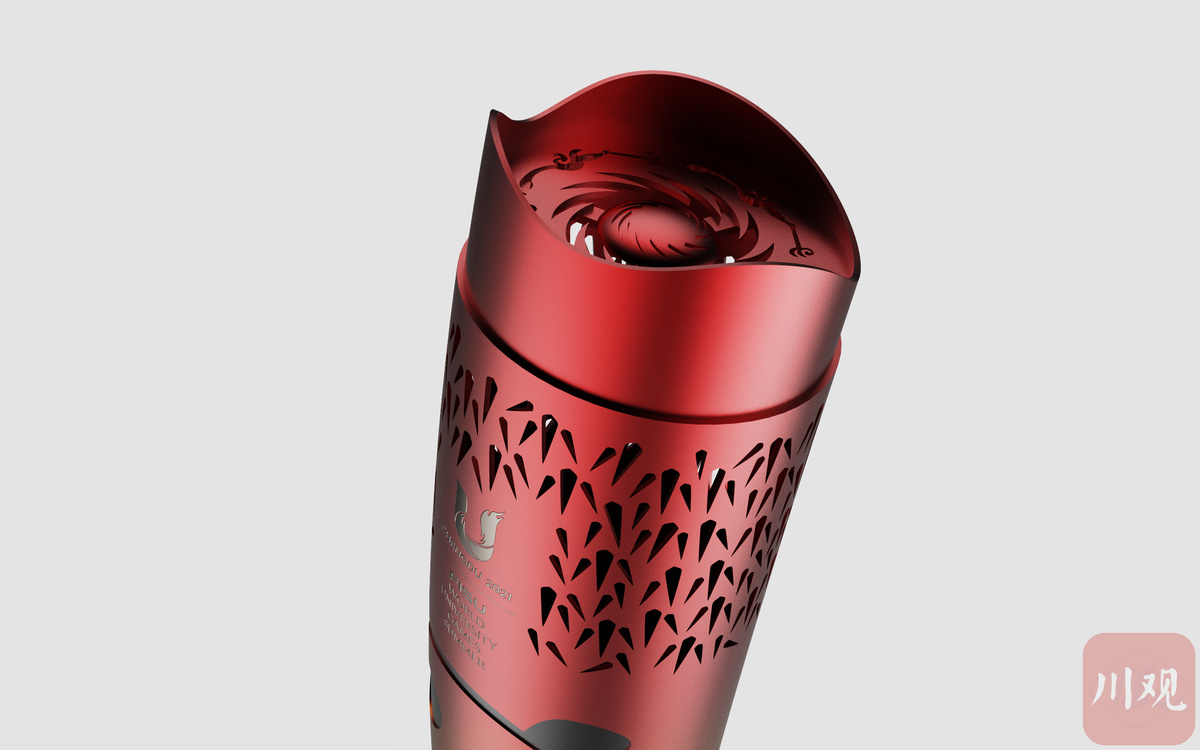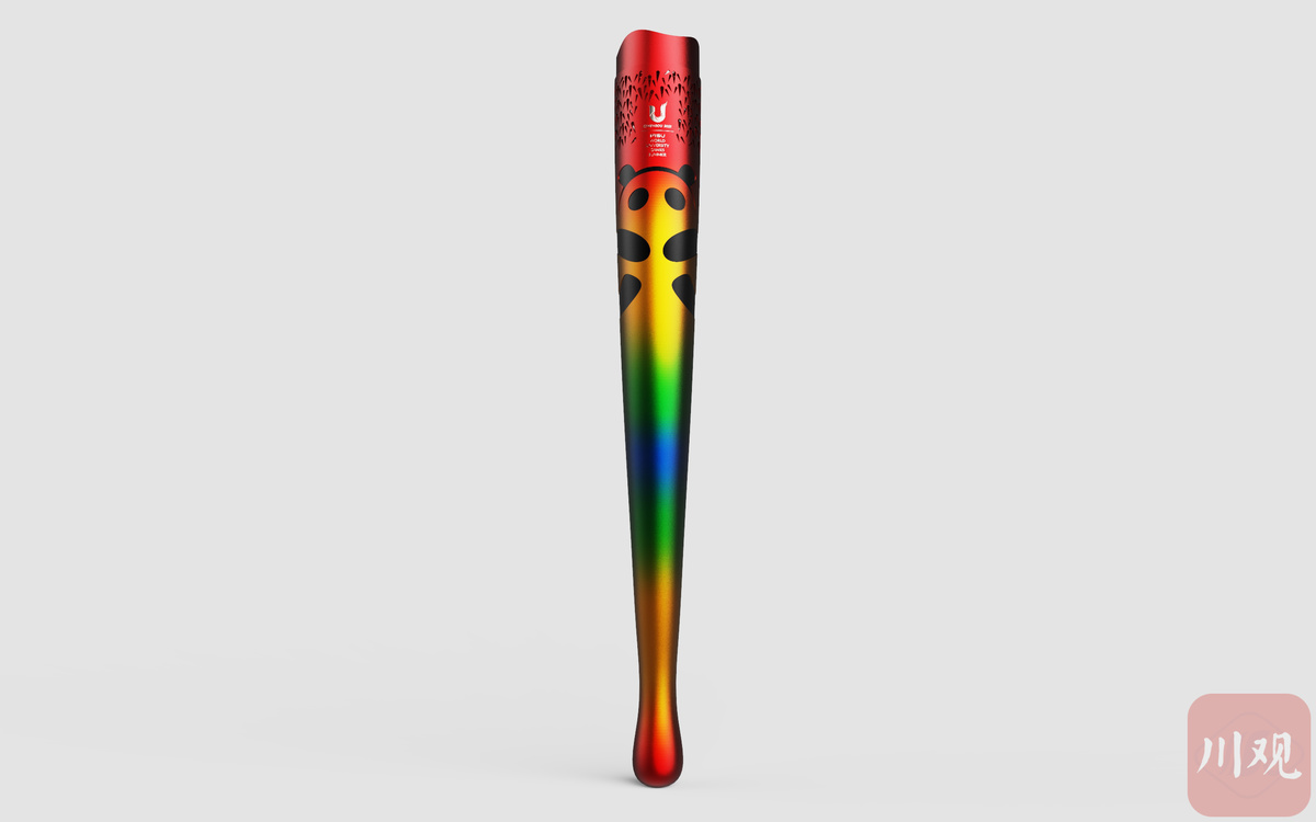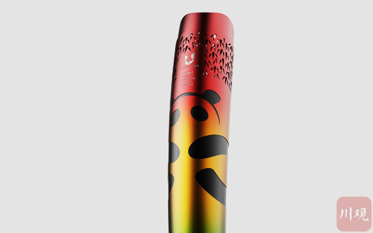 火炬正面,以国际超级IP、四川“活化石”——大熊猫为主元素,展现热情奔放、乐观包容的文化态度;