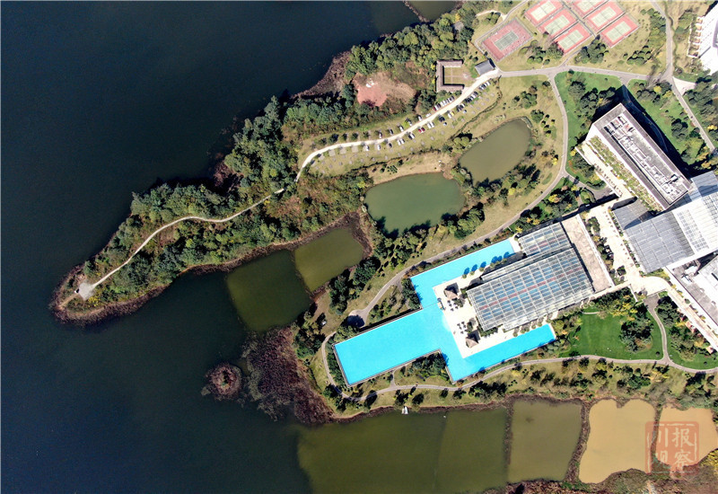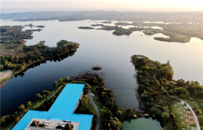 11月初冬,仁寿县黑龙滩国家湿地公园,色彩斑斓景色吸引游客前来观光游玩,湿地公园包括黑龙滩水库海拔486米淹没线以下的水域和眉山、该县取水口周边区域及杨柳河东风渠入口水源保护区。