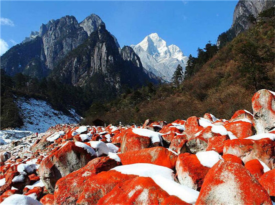 冬雪映红石(供图:海螺沟景区管理局)
