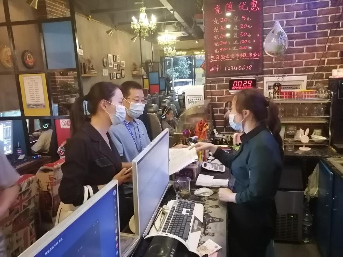 东兴区纪委监委派驻区委宣传部、区司法局纪检监察组联合开展网吧查码测温落实情况督查。