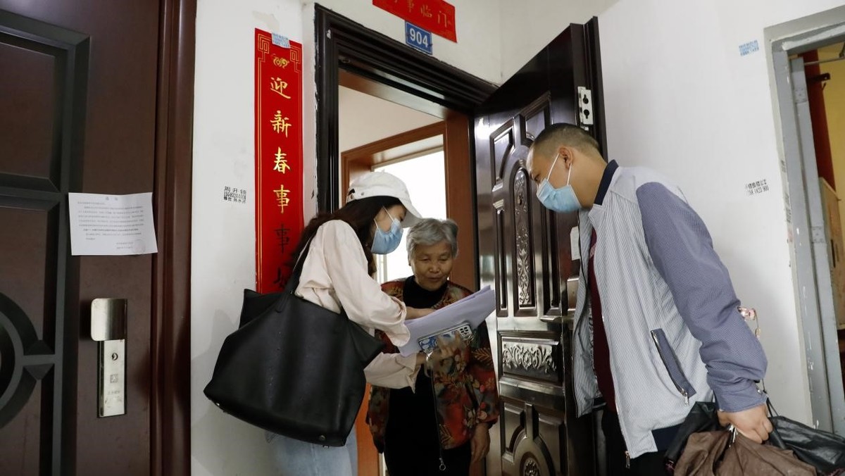 东兴区纪检监察干部到社区逐户排查接种情况,对每个家庭成员接种情况核查到位。