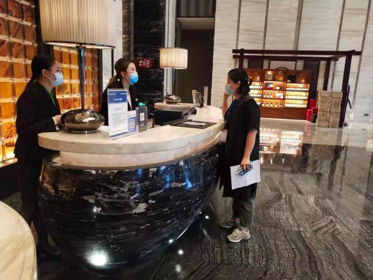 东兴区纪委监委派驻区交运局纪检监察组在酒店督查疫情防控工作落实情况。