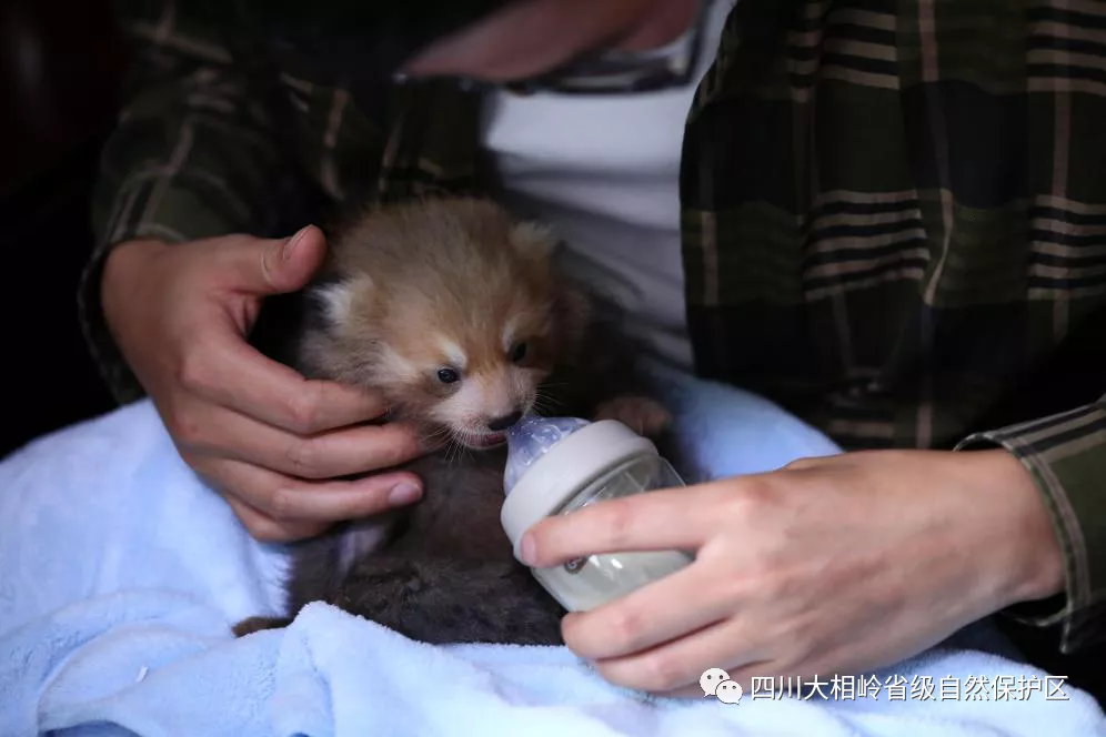 9月1日,记者从四川大相岭省级自然保护区获悉,近日,保护区监测巡护队员梁平在日常巡护途中,意外发现一只小熊猫幼崽,经仔细检查,小熊猫幼崽无明显外伤,约30-40日龄。经简单处理后,工作人员将幼崽带回保护区管理局进行后续的身体检查与观察,目前该幼崽身体情况良好。