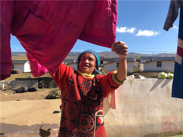 勒尔曲洛正在晾晒衣服。
