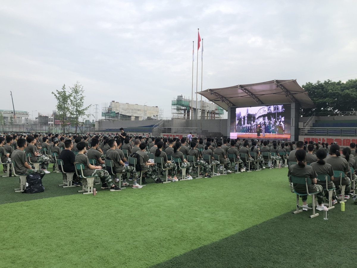 成都七中万达学校初一年级同学在操场观看开学第一课
