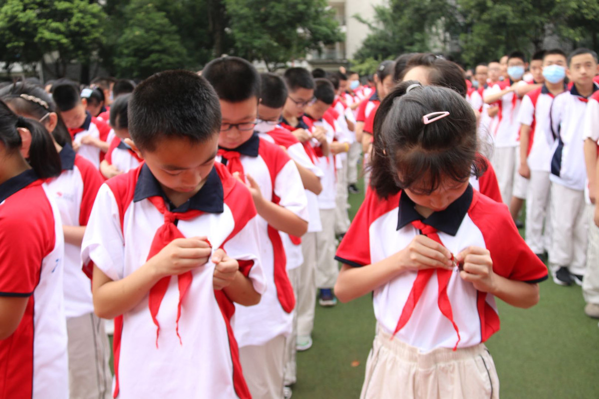 9月1日,成都师范附属小学慧源校区操场上师生共同参与“开学第一课”,开展党史学习教育。