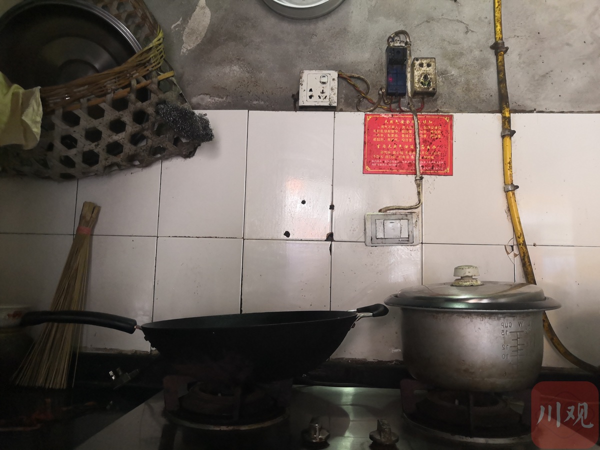 就在管理站对面的一户农户家中,暗访组成员看到该村民家的楼梯间变成了厨房,狭小的空间内摆满了燃气灶台和锅碗瓢盆等。而更让人心惊的是,就在燃气灶边上的墙壁上,安装着插座和电闸,电线上面已经油烟遍布、油腻不堪。“虽然有通气风扇,在这么狭小的空间内,安装燃气是非常不安全的。更主要的是,燃气灶的明火很容易烧掉电线,引起电路起火,发生用电火灾。”杨甫成表示。