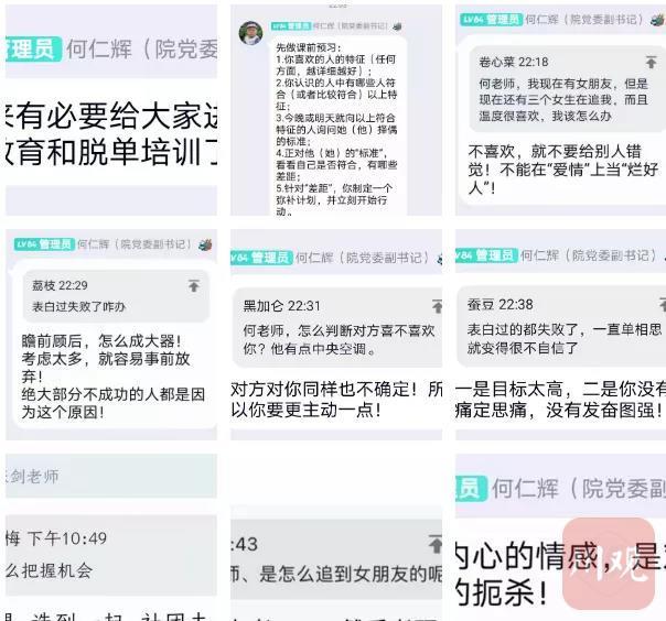 “真开课啊?!”之后群内越来越多的同学开始参与讨论,“老师,遇到喜欢的人要主动出击吗?”“老师,我喜欢的人有女朋友怎么办?”