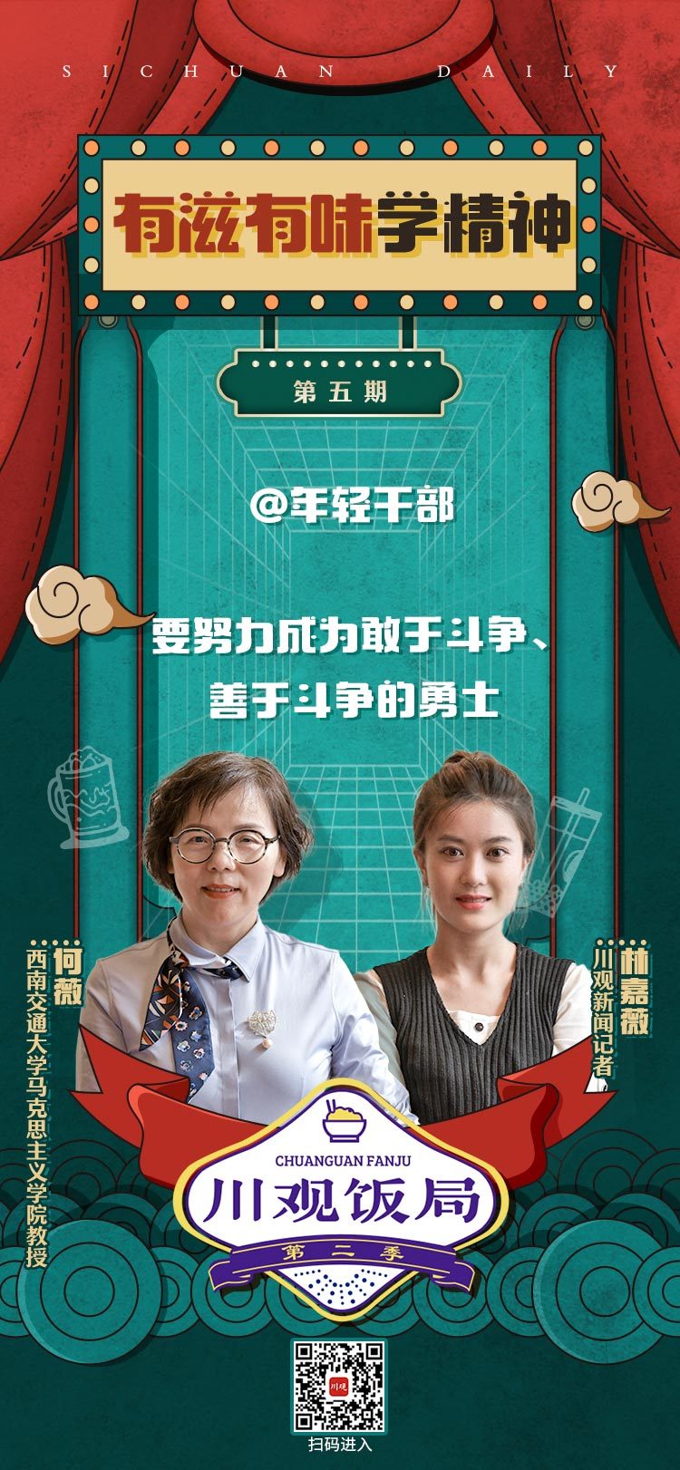 第五期,川观小伙伴邀请到了四川省委宣讲团成员、西南交通大学马克思主义学院教授何薇,一起喝茶。在下午茶的时间,聊一聊“敢于斗争,敢于胜利”这个话题。