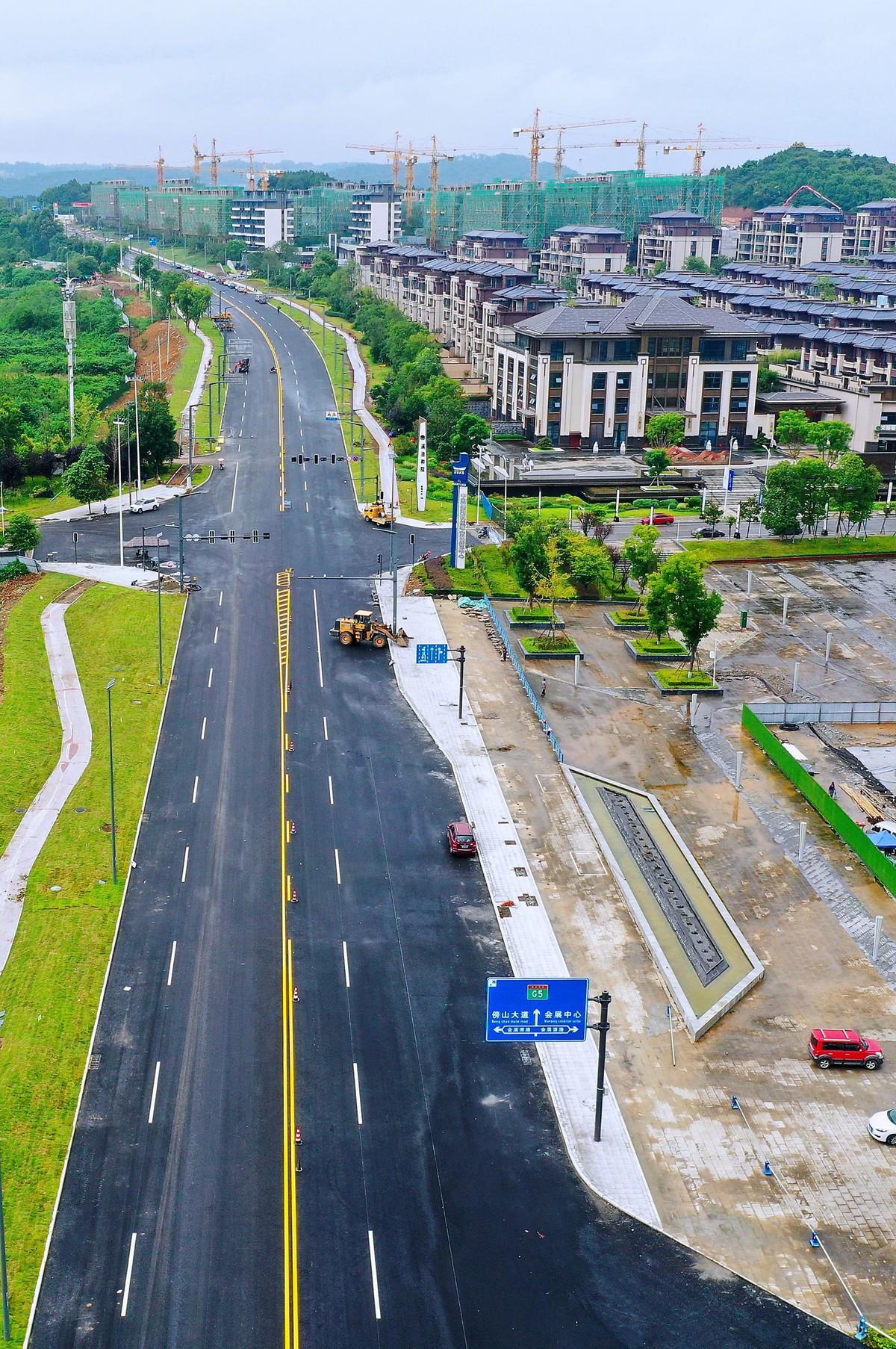 再往前走是飞云大道道路提升改造项目,其中,绵阳南收费站至会展中心段约5公里道路已完成主体路面铺装、黑化及标志线划定,目前正进入路边绿植整修和工程垃圾清运工作。