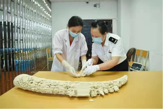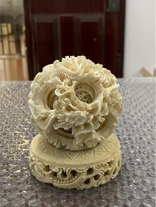 此次海关移交文物部门的罚没物品共计4350件,系515起海关追缴罚没案件的成果。象牙制品中,除了数以千计的牙珠串、手镯和手链外,还有许多采用圆雕、浅浮雕、高浮雕、镂雕等多种技法雕刻的摆件、饰品、文玩和实用物品,内容涉及人物、动物、花卉、风景等多种题材。其中,重达19.09千克的《九龙壁》、长1米的整根牙雕制品和素有“鬼工球”之称的镂雕象牙球最为精美,具有极高的艺术价值。