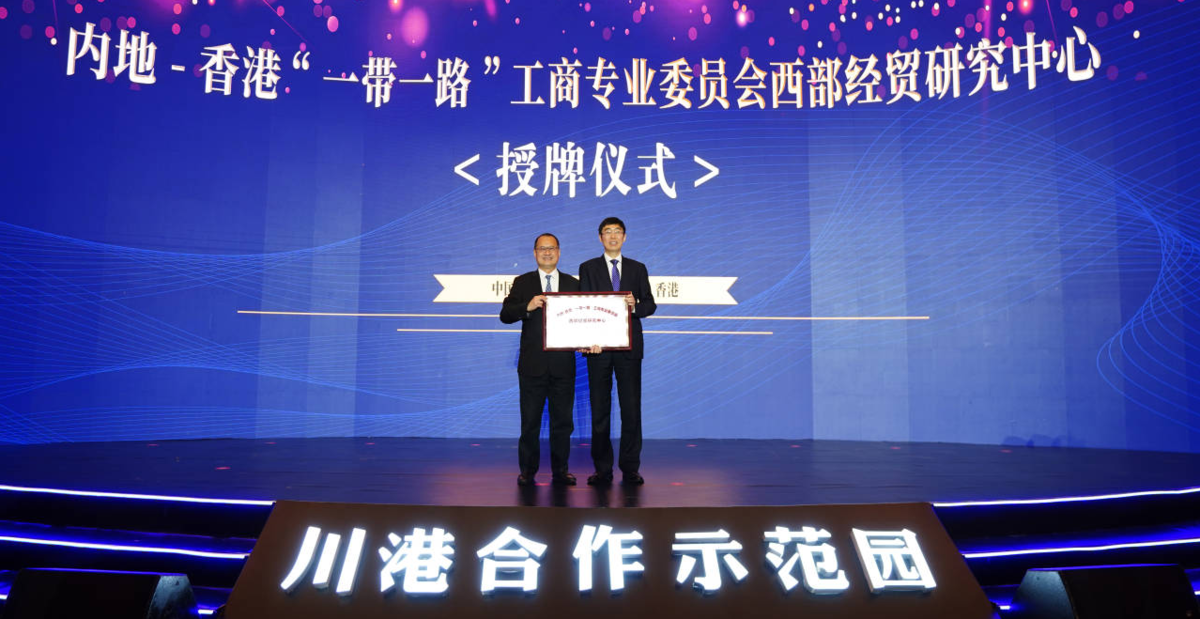 全国政协常委、香港新华集团主席蔡冠深为内地香港“一带一路”工商专业委员会西部经贸研究中心授牌。