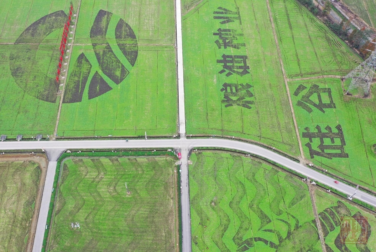 11月25日,在成都市崇州市隆兴镇,一块块绿色的农作物犹如“绿色地毯”。