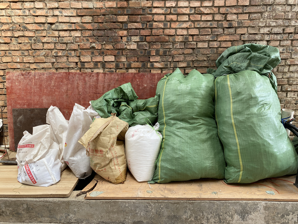 记者在原生产厂房中看到,全部生产线已经拆除完毕,厂房边堆放有袋装聚乙稀。“生产泡沫果袋主要原料就是聚乙烯和丁烷气体,这种气体易燃,仁和区应急管理局已协调专业运输企业将其运回原生产企业。”孙福伦说。