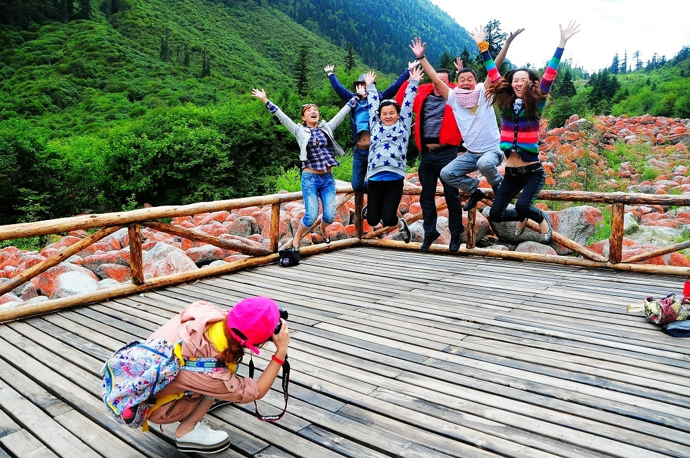 毕棚沟红石滩景区内的游客 肖笛 摄