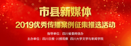 为进一步巩固壮大主流思想舆论,更好地引导群众、服务群众,在庆祝新中国成立70年大庆之年,“市县新媒体2019优秀传播案例征集推选活动”启动。今年的征集推选活动特别由四川省委网信办作为指导单位,四川日报·川报观察、四川大学文学与新闻学院共同主办,面向四川省内各市(州)、县(市、区)新媒体征集优秀传播案例,记录下2019四川新发展、新面貌、新成就。