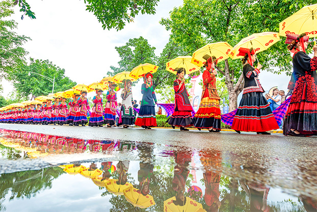 彝家阿妹曼妙的身姿,舒缓而动的彩衣彩裙