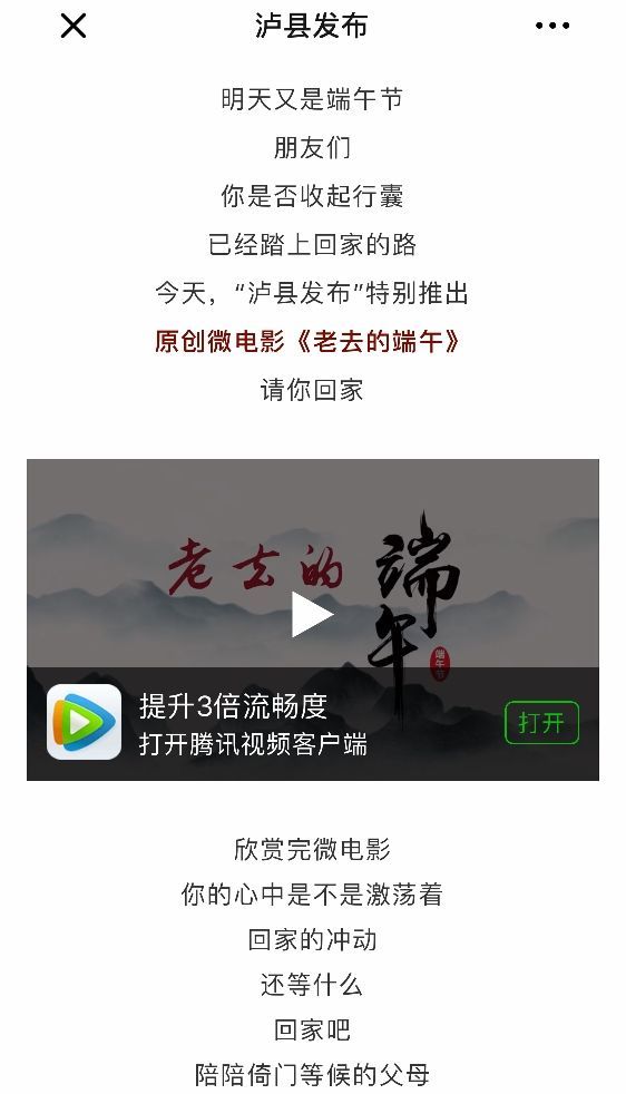 戳图看微电影↑↑↑泸县融媒体中心:今天,我们用原创微电影《老去的端午》请你回家