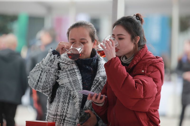 游客品尝藏茶