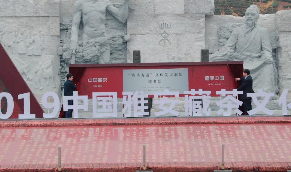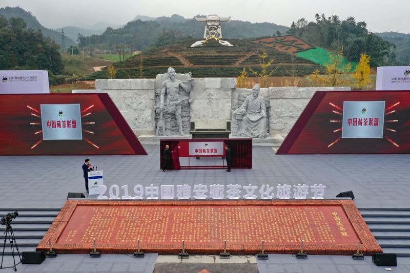 庄重肃穆的茶祖祭祀大典结束后,上午10点开幕式正式开始,雅安市委书记兰开驰致欢迎词。随后,现场举行了“茶马古道”文旅发展联盟揭牌仪式、茶马古道旅游线路推介、“中国藏茶”联盟揭牌仪式等活动。