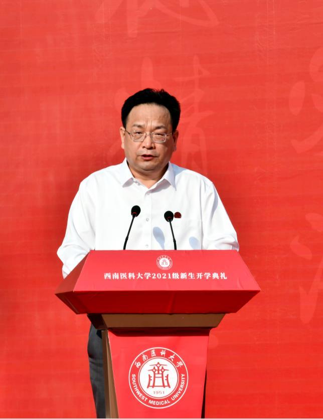 在建党百年之时,在学校即将迎来办学70周年之际,我们迎来了3600名优秀学子,带着年轻的梦想和蓬勃的朝气,正式加入了西南医科大学这个大家庭。在此,我谨代表学校党政和全体师生员工,对你们的到来表示最热烈的欢迎和最诚挚的祝贺!同时,向辛勤培育你们的家长和老师致以崇高的敬意和衷心的感谢!