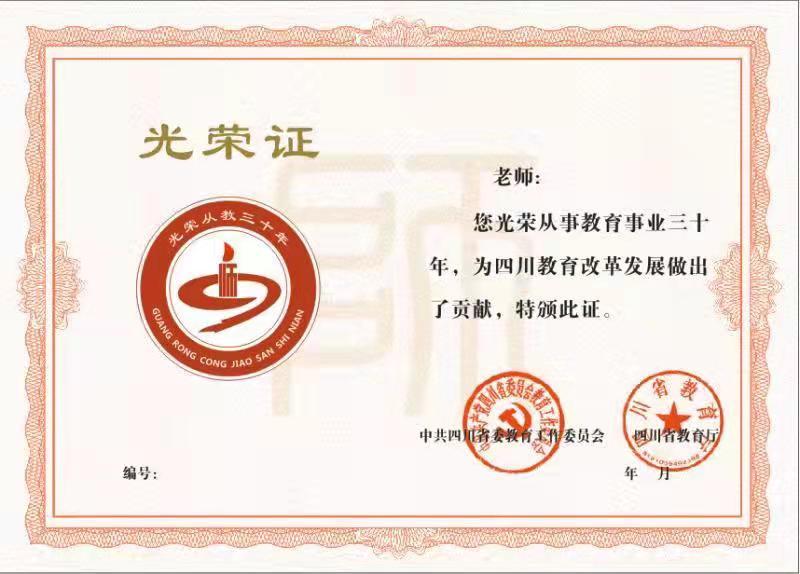 川观新闻记者9月7日从四川省教育厅获悉,今年教师节期间,我省将组织开展教师光荣退休致敬活动。省委教育工委、教育厅统一印制“光荣从教 30 年”证书,由各级各类学校为今年退休且从事学校教育教学工作满 30 年的教师颁发。