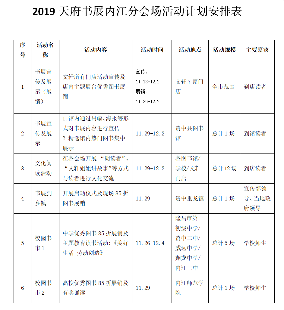 下面一起看一下,“2019天府书展·内江分会场”的系列活动有哪些: