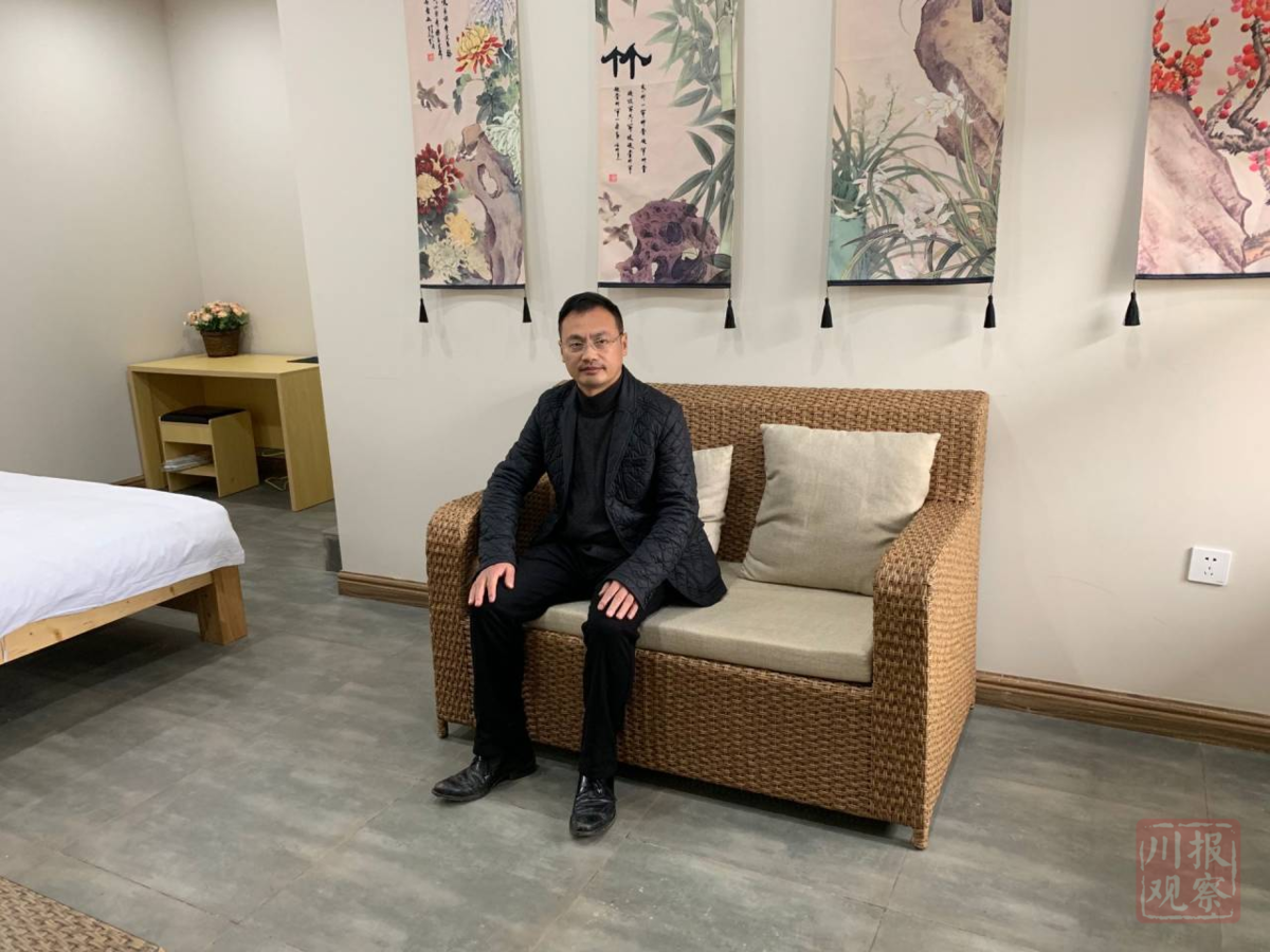 泸州纳溪区上马镇黄桷坝村,乡村振兴“特聘村主任”、泸州鼎立置业有限公司董事长曾敬平,坐在自己改造的民宿里。魏冯摄。