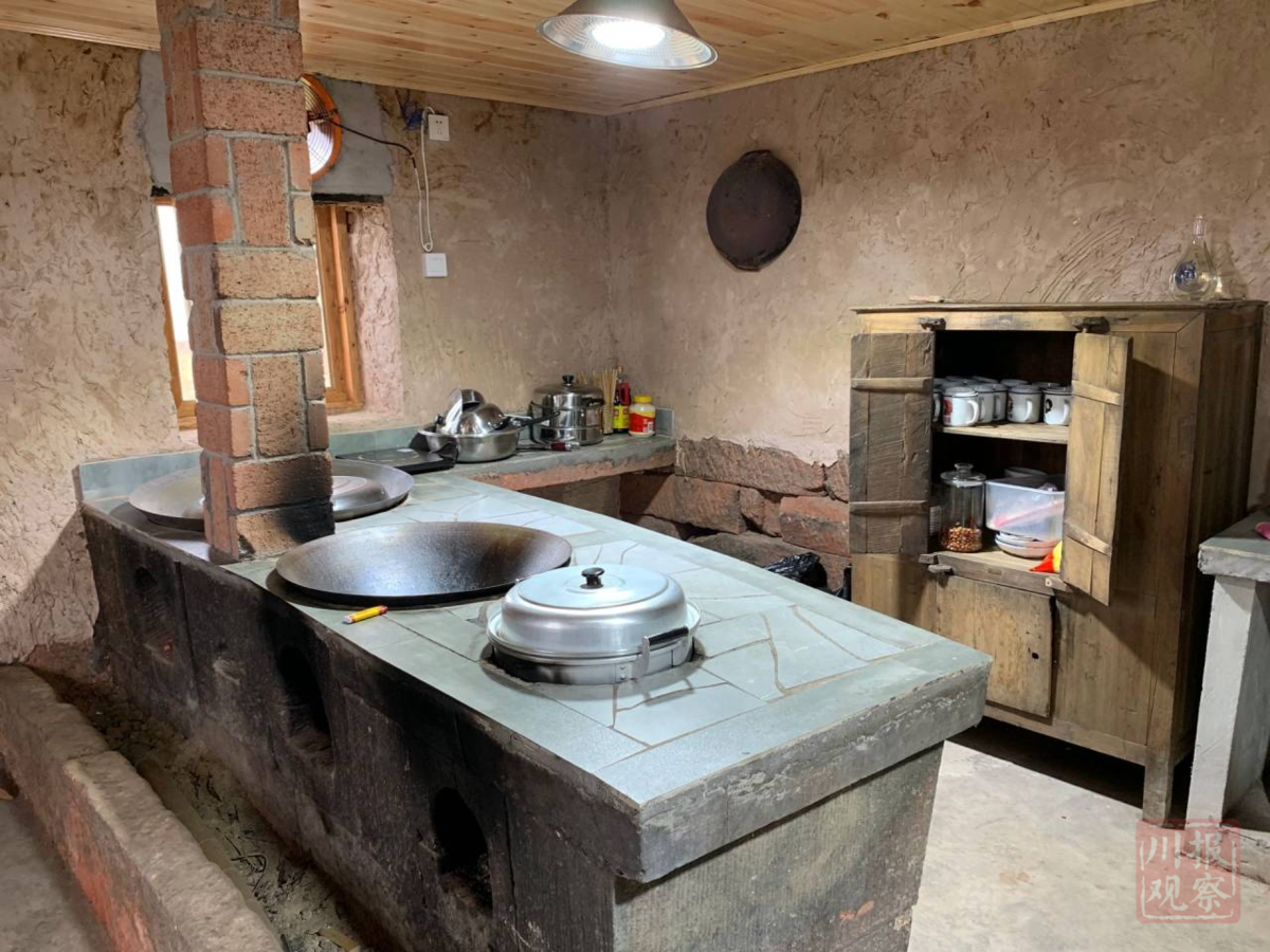 泸州纳溪区上马镇黄桷坝村,乡村振兴“特聘村主任”、泸州鼎立置业有限公司董事长曾敬平将一些破旧的瓦房改造成民宿,图为民宿里面的厨房。魏冯摄。
