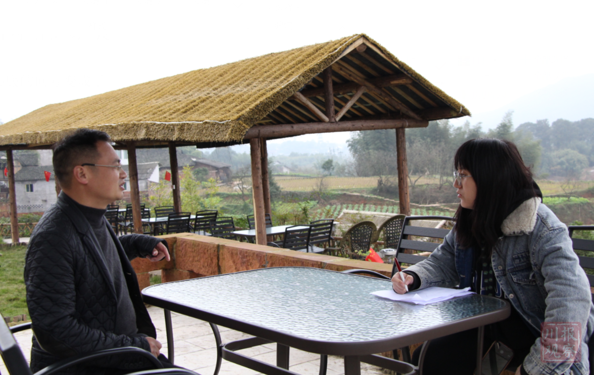 川报观察记者正在采访泸州纳溪区上马镇黄桷坝村乡村振兴“特聘村主任”、泸州鼎立置业有限公司董事长曾敬平。陈扬摄。
