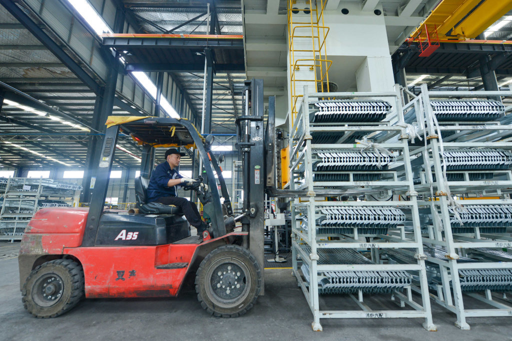 南充市蓬安县河舒工业园区内的四川博萨汽车部件有限公司生产线上,工人正在赶制汽配产品订单 彭圣洲/摄