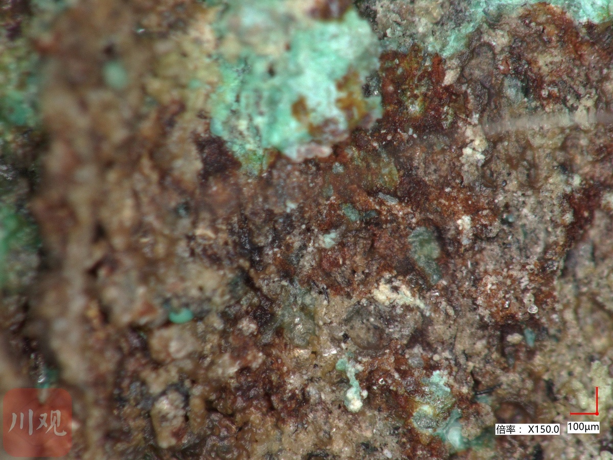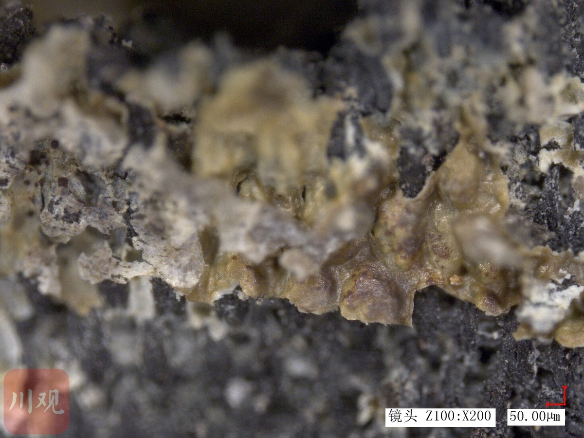四川省文物考古研究院文物保护中心馆员郭建波负责丝绸研究。据他介绍,早在今年5月,他就在显微镜下对丝绸残留物进行观测时,发现了丝绸上可能存在涂层,“但是当时还不能完全确认。”经过几个月的寻找和研究,他发现了越来越多的丝绸残片存在涂层。今年6月,三号坑大面具出土时,郭建波在面具的右眼处发现了带有涂层的丝绸残留;不久前,7号坑那件颇似窨井盖的青铜网格上,同样附着了大量有涂层的丝绸残留物。在几座新发现祭祀坑内,三号坑发现的量最大:在12个器型、16件器物上都发现了丝绸残留物。