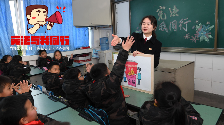检察干警余婷走进德阳市华山路学校,和孩子们互动交流,普及宪法知识。