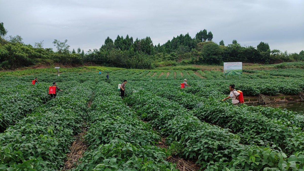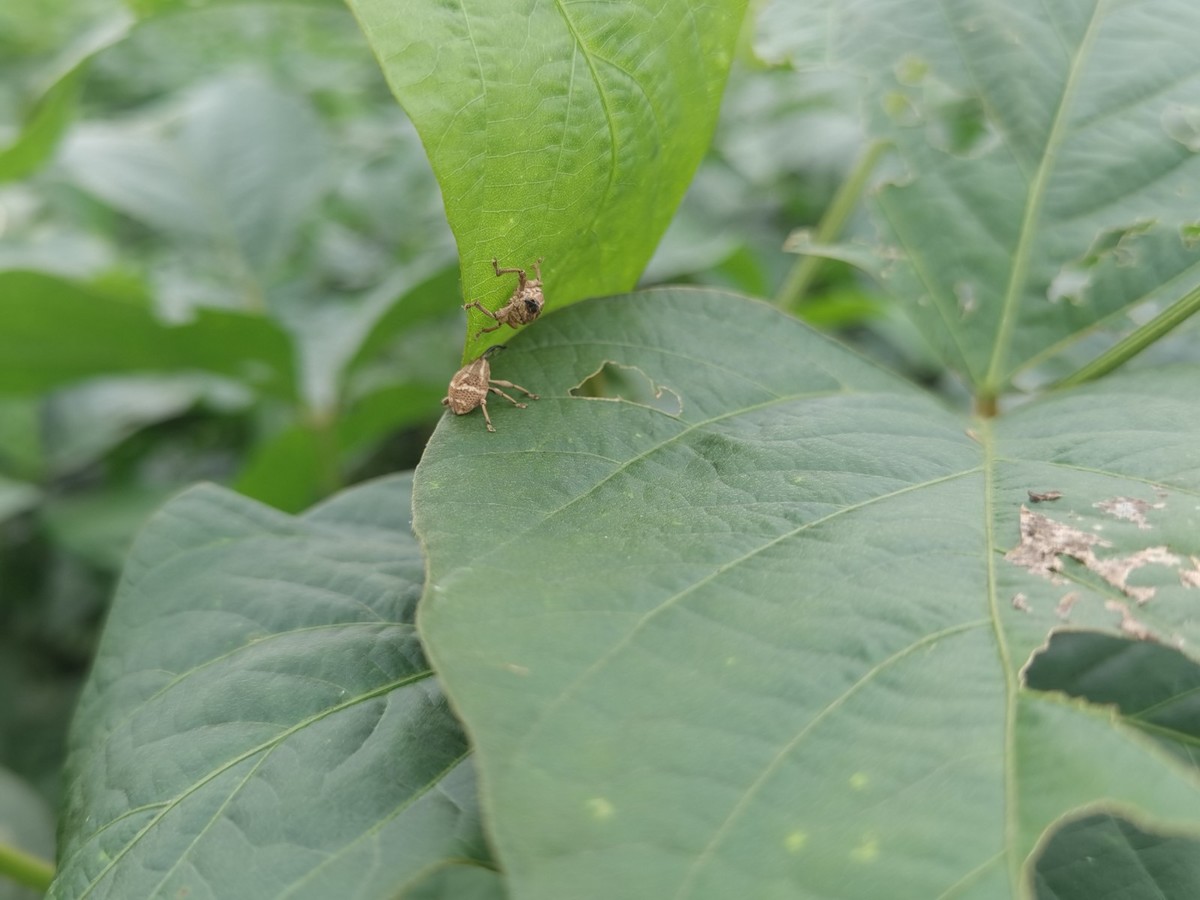 面对多地传来的病虫害消息,雍太文教授率领团队成员通过实地调查或电话了解的方式,对眉山市仁寿县、遂宁市安居区、自贡市贡井区、巴中市恩阳区、达州市宣汉县等地的间套作大豆结荚及病虫害发生情况进行了调查,发现常见的大豆虫害已经在我省多地点状出发生,部分区域甚至较为严重。