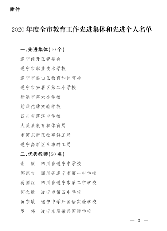 近年来,遂宁始终坚持把教育事业摆在优先位置,作为重中之重来抓,教育基础设施不断完善,教育教学质量持续提升,教育品牌更加彰显。“十三五”期间遂宁全市教育财政共投入203.64亿元,新建及改扩建(含迁建)义务教育学校234所,公办幼儿园60所,全市义务教育实现基本均衡发展,普惠性幼儿园在园幼儿占比达85.43%,义务教育学校新增学位1.5万个。