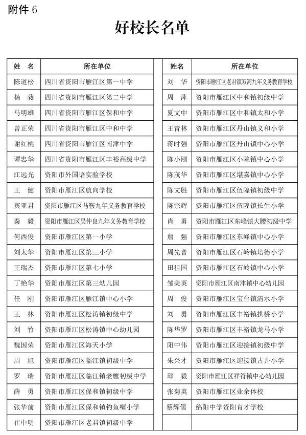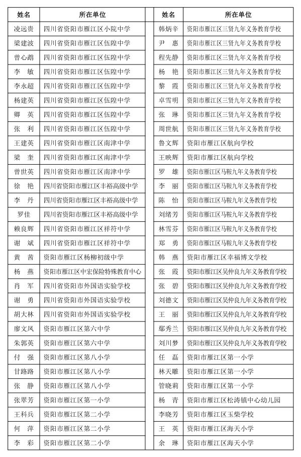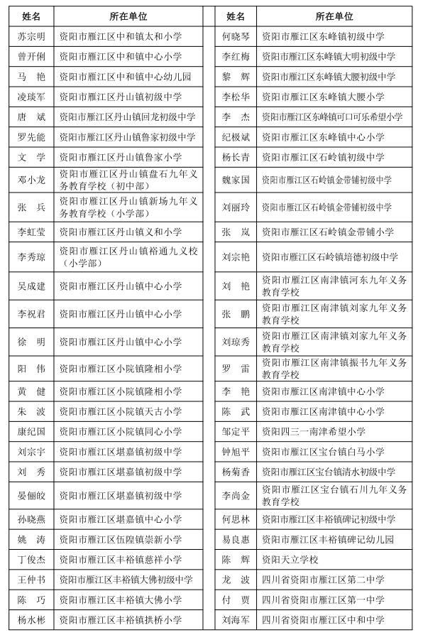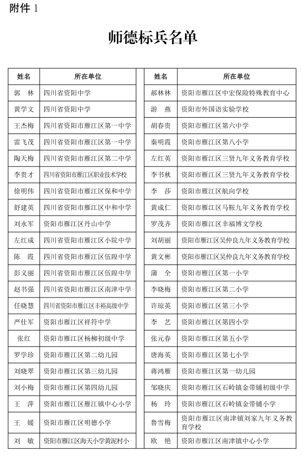9月9日,据资阳市雁江区消息,在第37个教师节即将来临之际,该区表彰了一批“师德标兵”、“师德先进个人”、“优秀教育工作者”、“好教师”、“教坛新秀”、“好校长”、“好学校”。