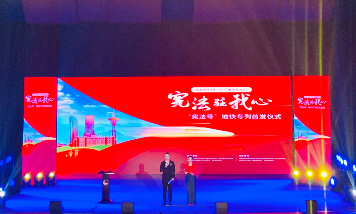 12月4日,由成都市委全面依法治市委员会办公室、市委宣传部、市直机关工委、市司法局主办,温江区委依法治区办、区司法局、西南财经大学协办的成都市“12·4”国家宪法日“宪法驻我心”主题活动暨“宪法号”地铁专列首发仪式在西南财经大学柳林校区举行。