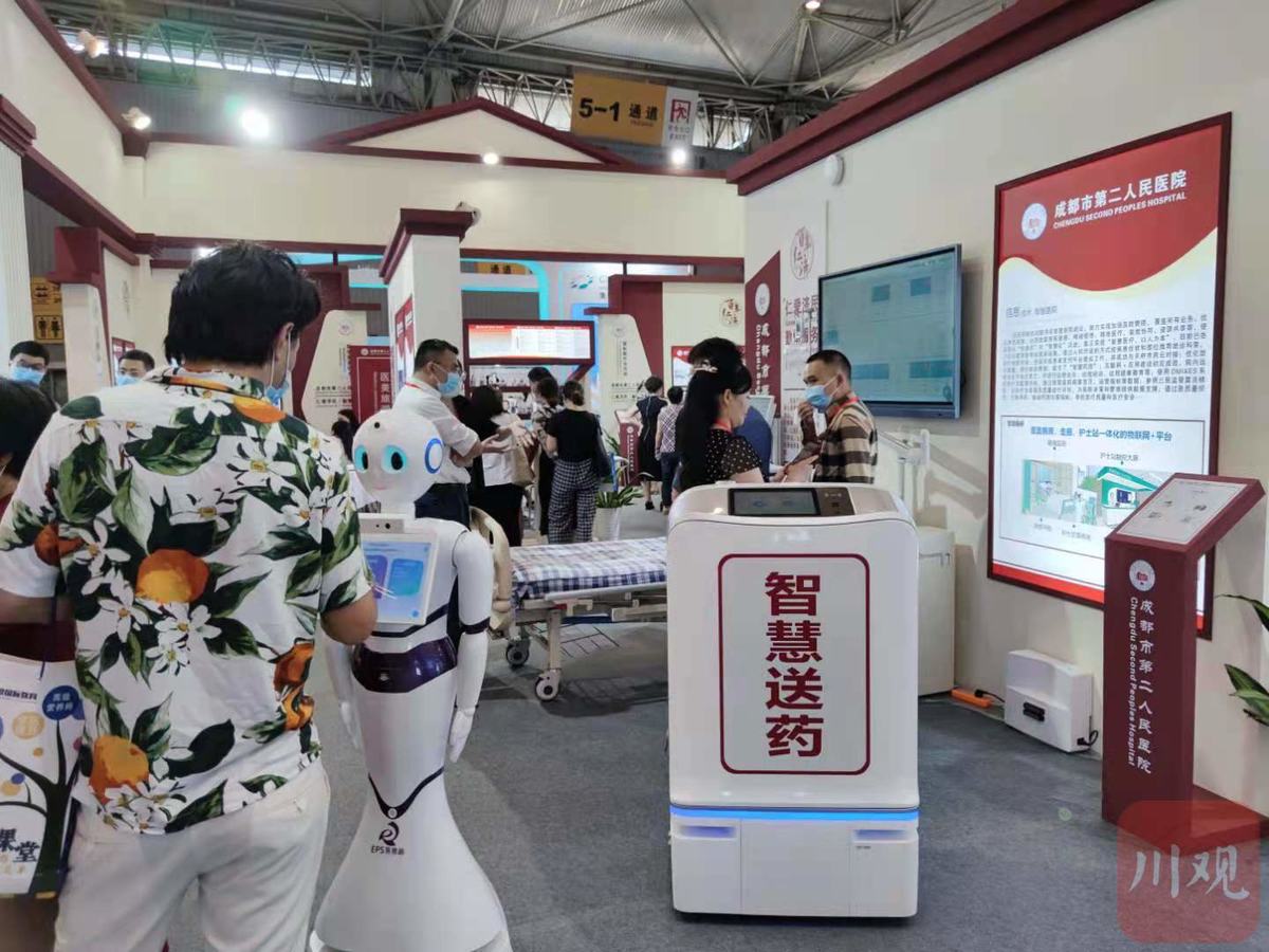 本次健博会上,成都市第二人民医院展示了院内的智能导诊机器人、智能发药机器人、智慧病房、智慧导航、4K内窥镜摄像系统等内容。