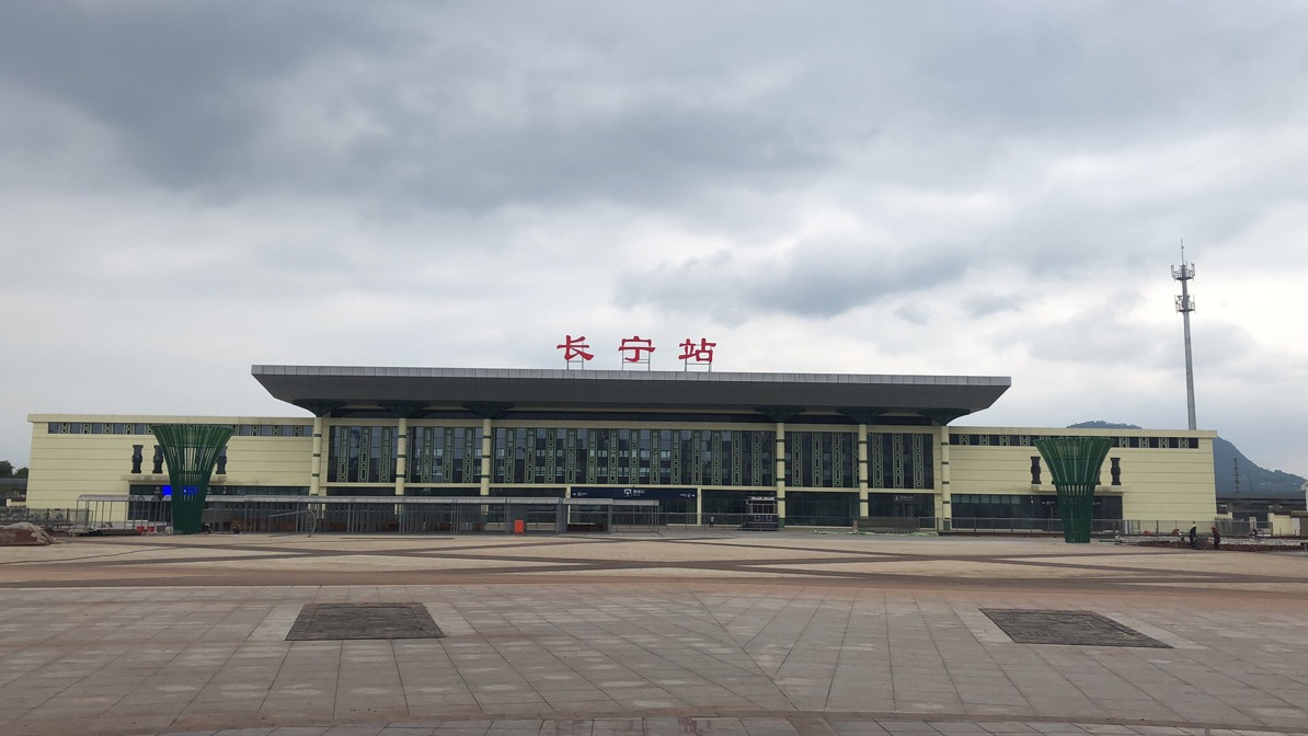 长宁站位于四川省宜宾市长宁县长宁镇大坪村,其构思为“芊芊细竹梁萦绕”,通过廊柱构造,将当地的竹子元素融入站房设计。候车厅的玻璃幕墙,则是采用抽象的竹元素和透视的玻璃相结合,虚实交错,实现了地方特色和现代建筑的交融。站房立面采用铝板有持续、有变化的分隔,层次分明,谱写了风吹竹萧瑟的意境。车站候车室面积3185平米,旅客最大聚集人数1152人,候车室座位576个。